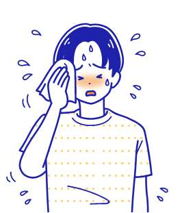 発汗が多い場合には、体の水分が不足し、体温上昇を抑える働きが低下することで脱水症だけでなく熱中症のリスクも増大します。