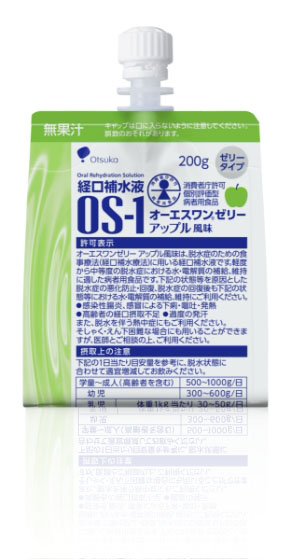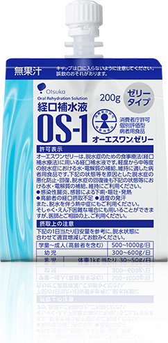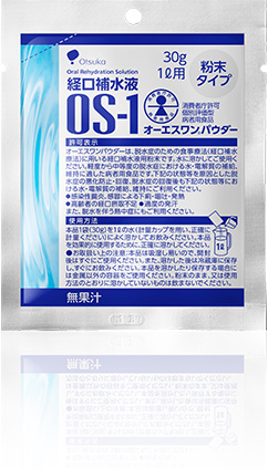 オーエスワンは、脱水症のための食事療法(経口補水療法)に用いる経口補水液です。軽度から中等度の脱水症における水・電解質の補給、維持に適した病者用食品です。下記の状態等を原因とした脱水症の悪化防止・回復、脱水症の回復後も下記の状態等における水・電解質の補給、維持にご利用ください。
